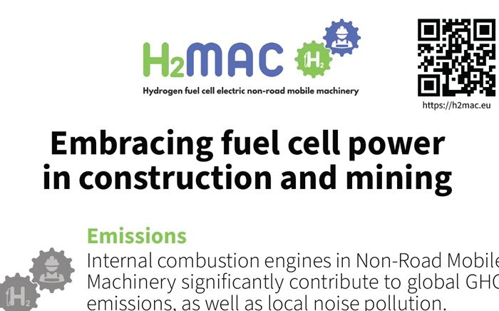 H2MAC is an innovative project that aims to design and demonstrate a new modular and scalable hydrogen-fuel cell electric powertrain concept in non-road mobile machines for construction and mining applications. At H2MAC, an excavator and shredder will be designed to integrate the new FCE powertrain and related subsystems and will demonstrate their performance and reliability in real working conditions for 1000 h in a quarry.